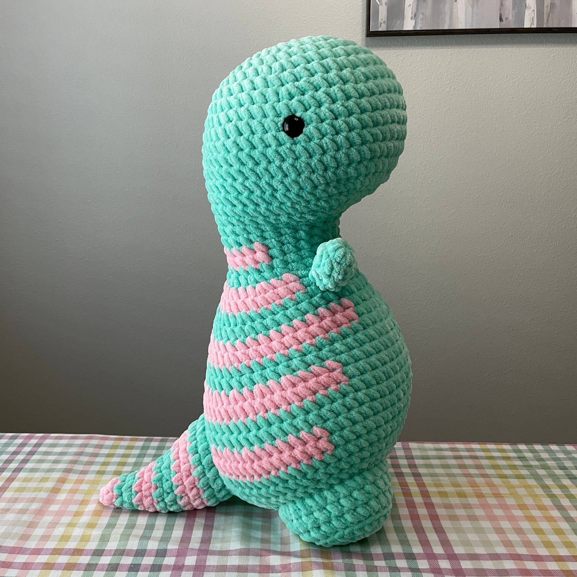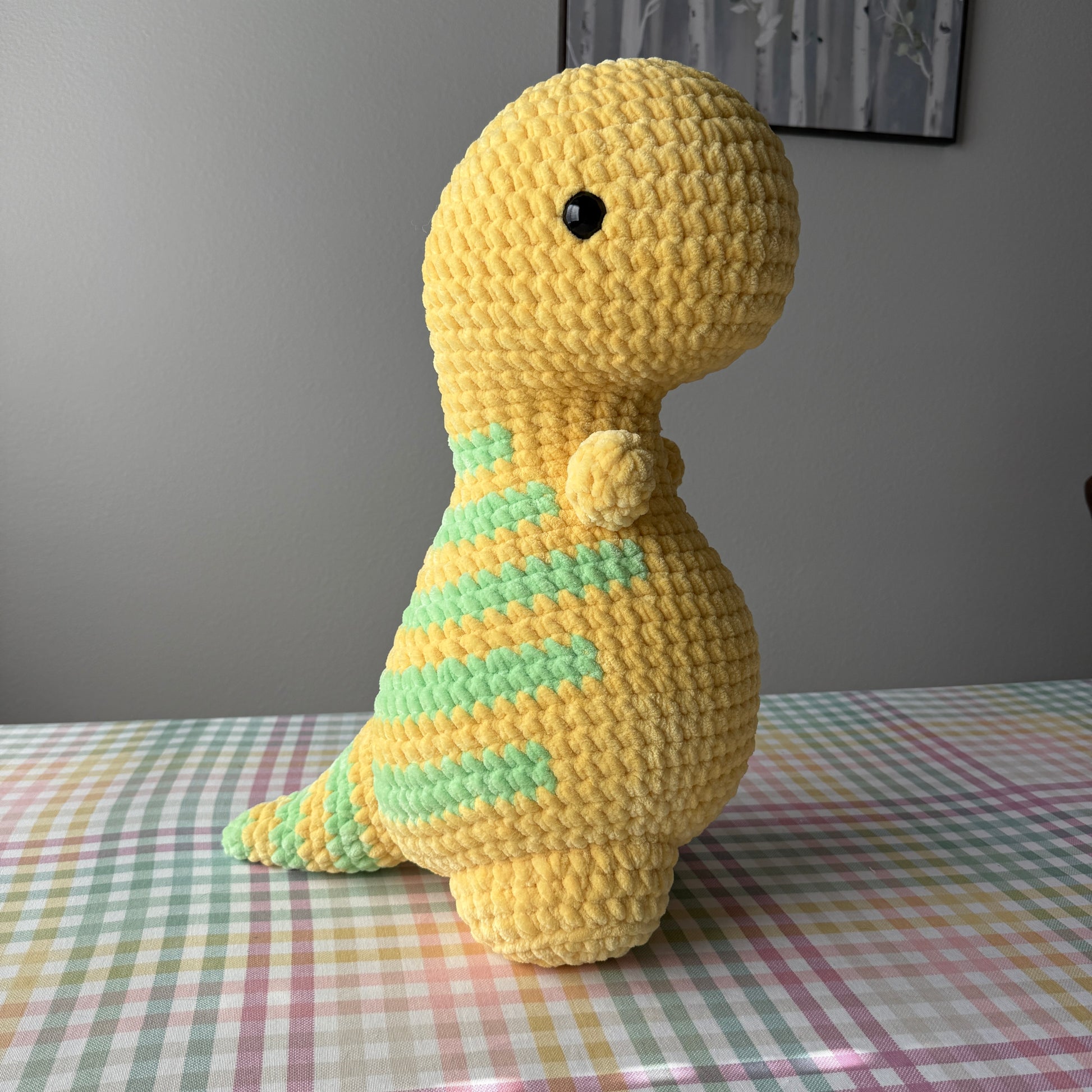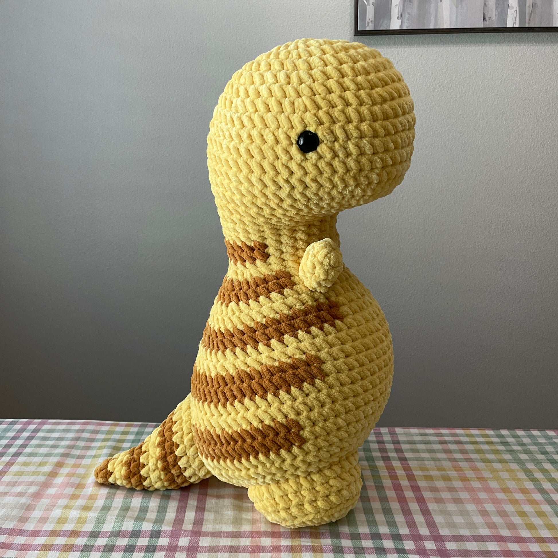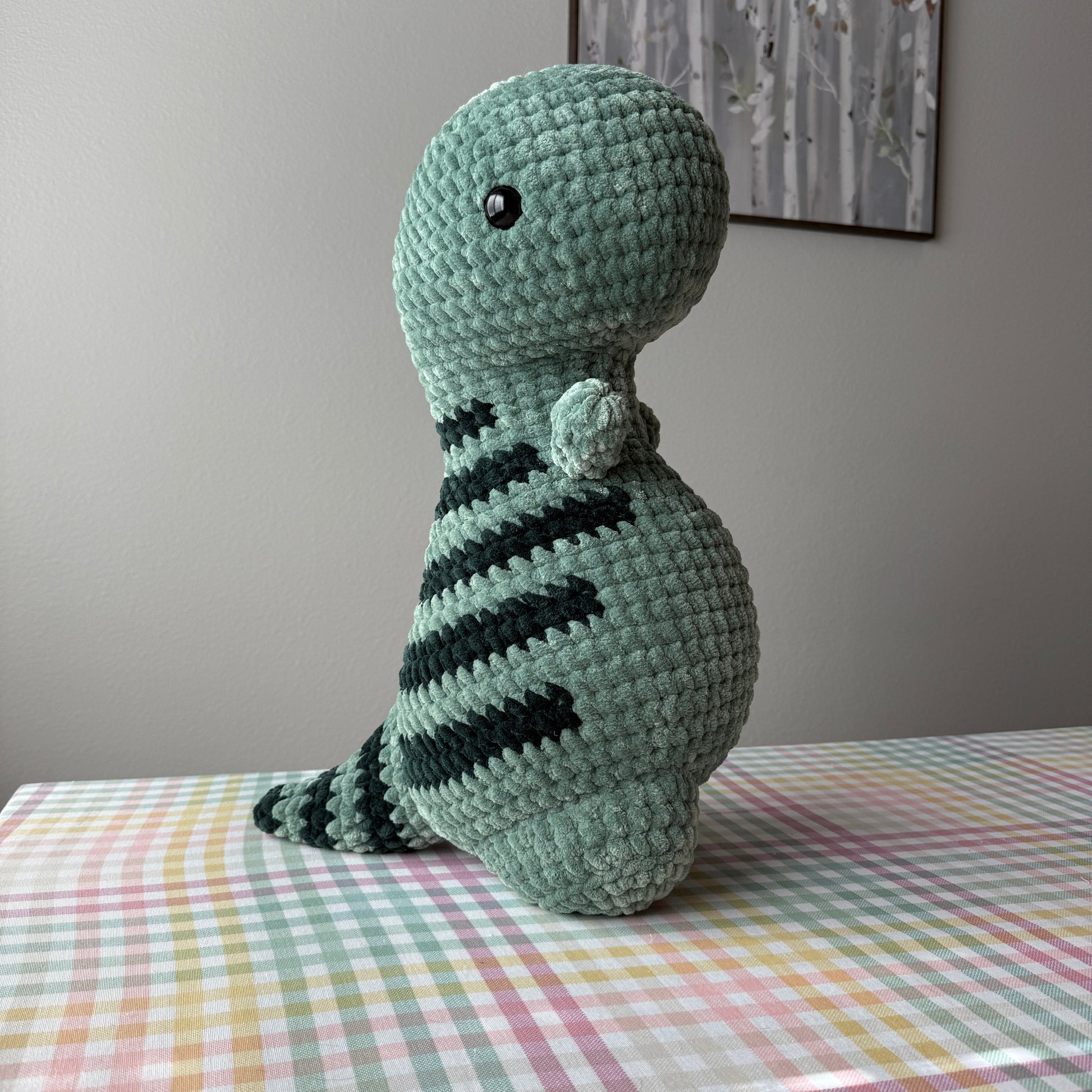 This is the 2nd biggest T-Rex I can crochet! It's made with a soft chenille yarn, stuffed with polyester fiberfill and love.