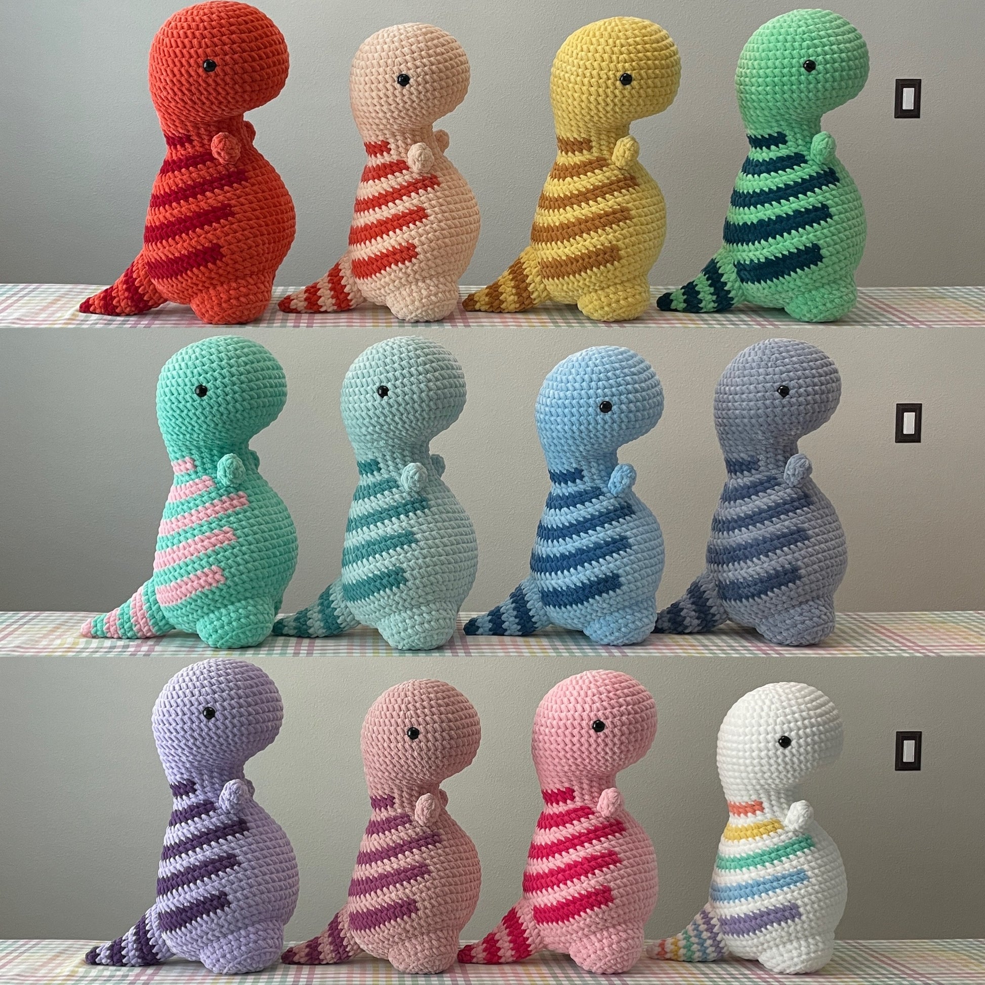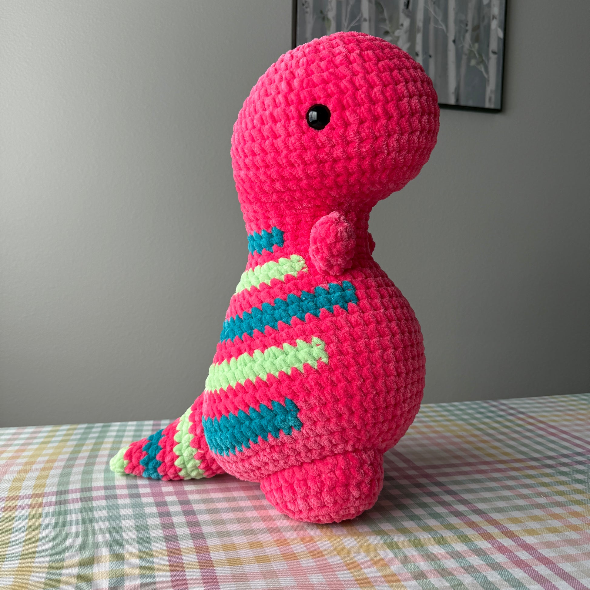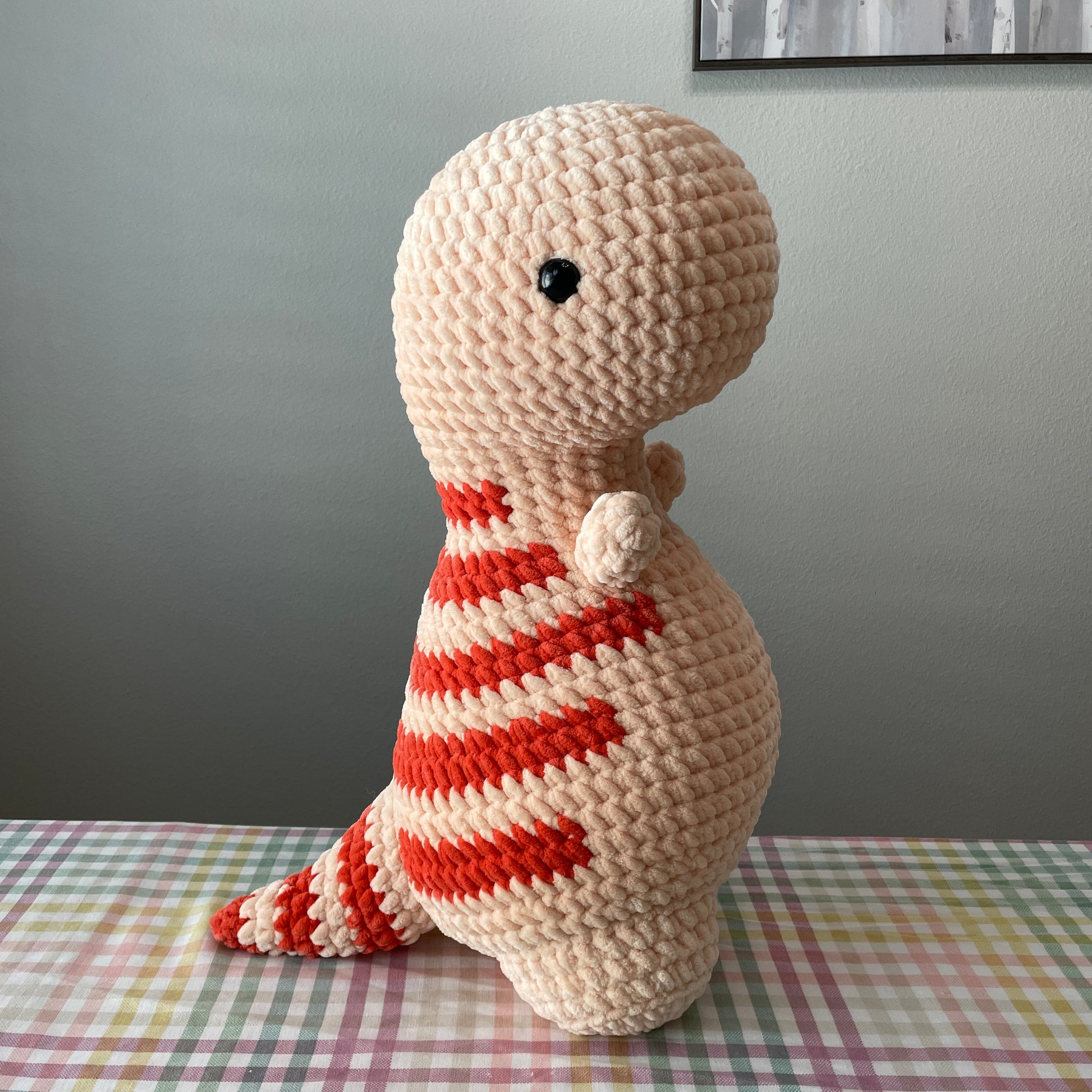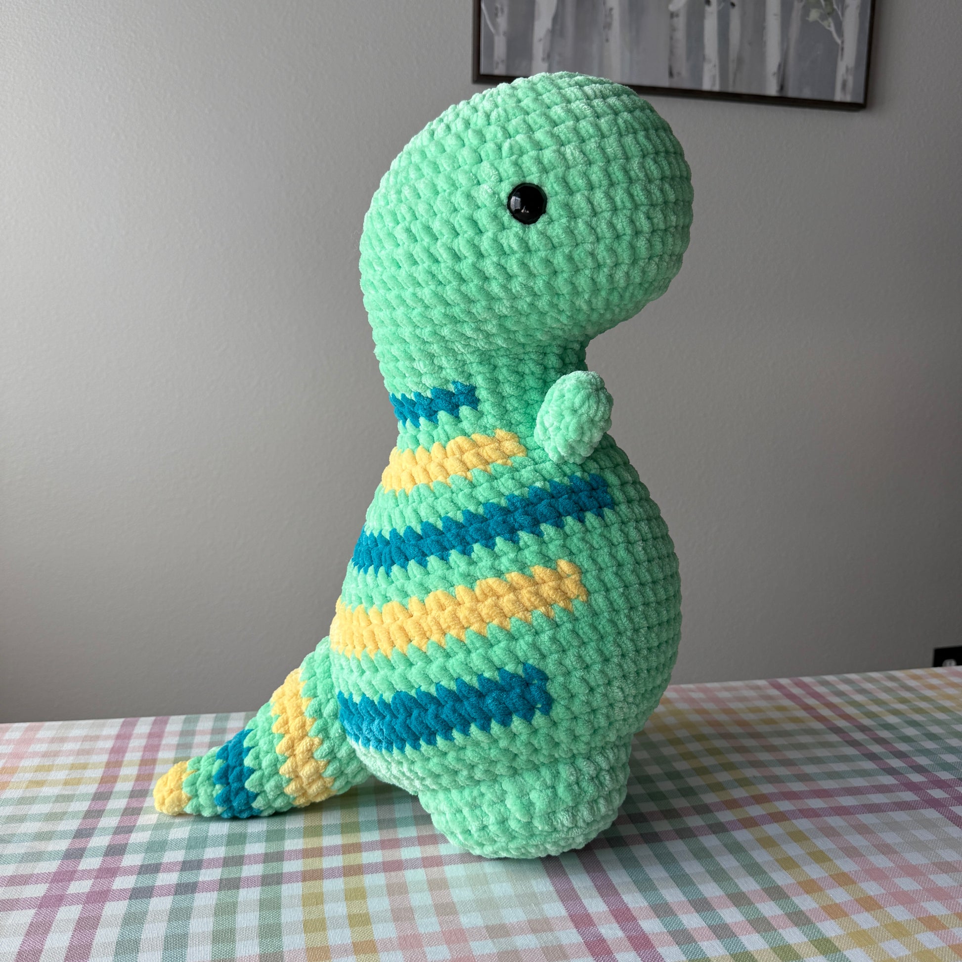This is the 2nd biggest T-Rex I can crochet! It's made with a soft chenille yarn, stuffed with polyester fiberfill and love.