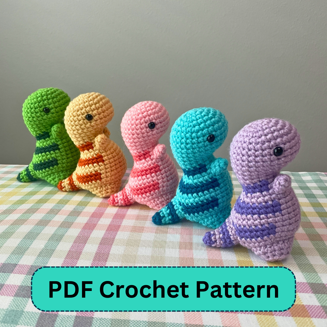 This purchase includes the crochet pattern to create your own Mini-Dino. NO PHYSICAL ITEM WILL BE SHIPPED. The PDF will be available as an instant digital download immediately after purchase.